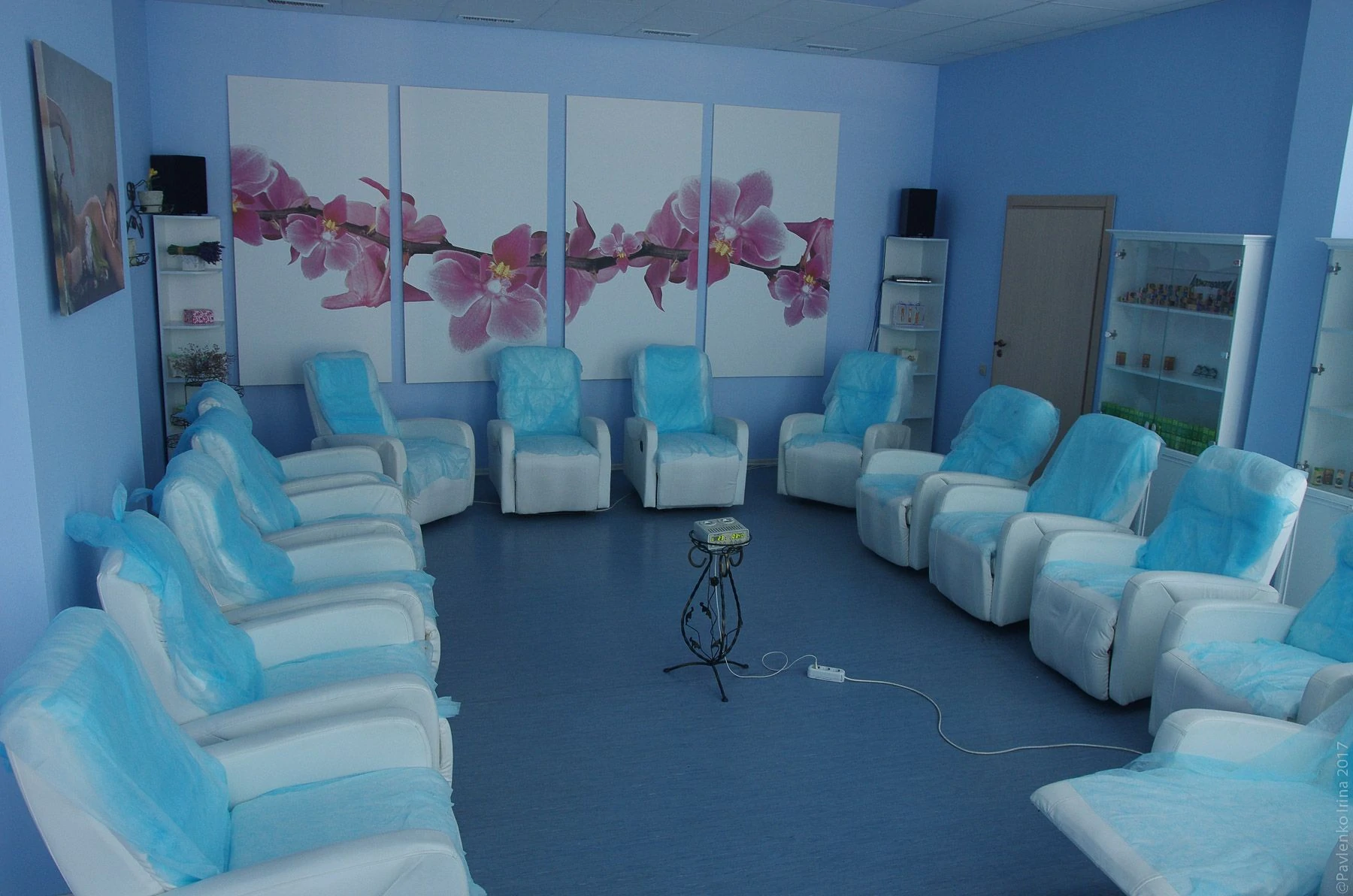Зал армоатерапии. Кресла раскладываются практически полностью в лежачее положение. И 20 минут группа вдыхает распыленные масла под спокойную музыку и пенье птиц. Всем нравится, никто не засыпает, не храпит, не играется в телефоне